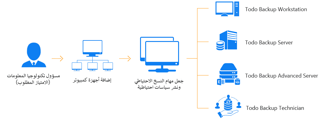 إجراء سياسات النسخ الاحتياطي، تعديل أو توزيع مهام النسخ الاحتياطي لأنظمة متعددة لتنفيذها بأقل وقت مستهلك.