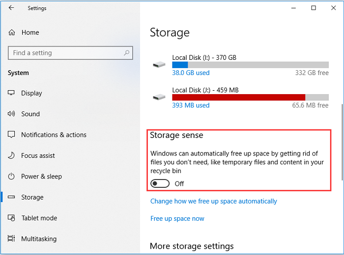 Storage Sense هي ميزة متواجدة على الويندوز 10 ، تقوم هذه الميزة بحذف الملفات الغير مستخدمة والملفات المؤقة عندما تمتلئ مساحة القرص الصلب على حاسوبك ، وأحيانا تقوم هذه الميزة بحذف مجموعة من الملفات القيمة في مجلد التنزيلا " Downloads" أو في سلة المهملات " Recycle Bin" لتحرير مساحة أكبر في القرص الصلب من أجل ملفات الويندوز ، وبالتالي إذا كنت تريد إيقاف الويندوز 10 من اتخاد قرار حذف الملفات بنفسه ، يمكنك إيقاف تشغيل هذه الميزة ، " Sense Storage".
