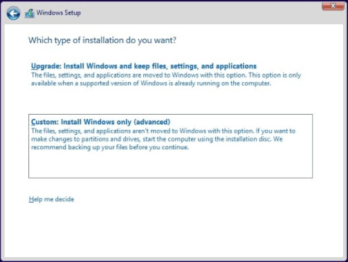 4.اتبع خطوات التثبيت الخاص Custom Install بعد ذلك سيطلب منك أن تختار قرص لتثبيت ويندوز 10 به، قم باختيار القرص ثم اضغط موافق.