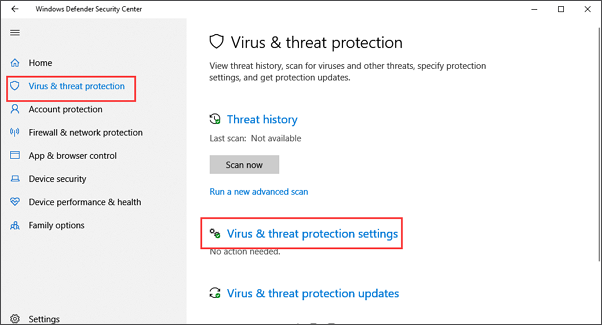 أولا : اذهب إلى جدار الحماية الويندوز " Windows Defender" ثم أنقر فوق الحماية من الفيروسات والتهديدات " Virus & threat protection".