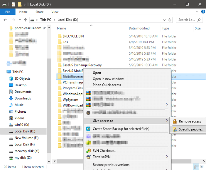 الخطوة 1 : إبحث عن الملف الذي تريد مشاركته ، أنقر بزر الفأرة الأيمن أو إضغط عليه ، وحدد منح حق الوصول إلى" Give access to" ثم أشخاص محددون " Specific people".