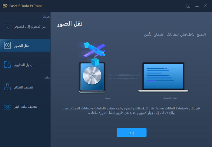 الطريقة السابقة يمكنها مساعدتك في نقل الملفات المتعلقة بالبرنامج والبرامج نفسها ، لكن إذا كنت ترغب في نقل البرامج والبيانات مثل المستندات ومقاطع الفيديو والموسيقى وغيرها ، فيمكنك الإعتماد ميزة نقلImage على برنامج EaseUS Todo PCTrans.